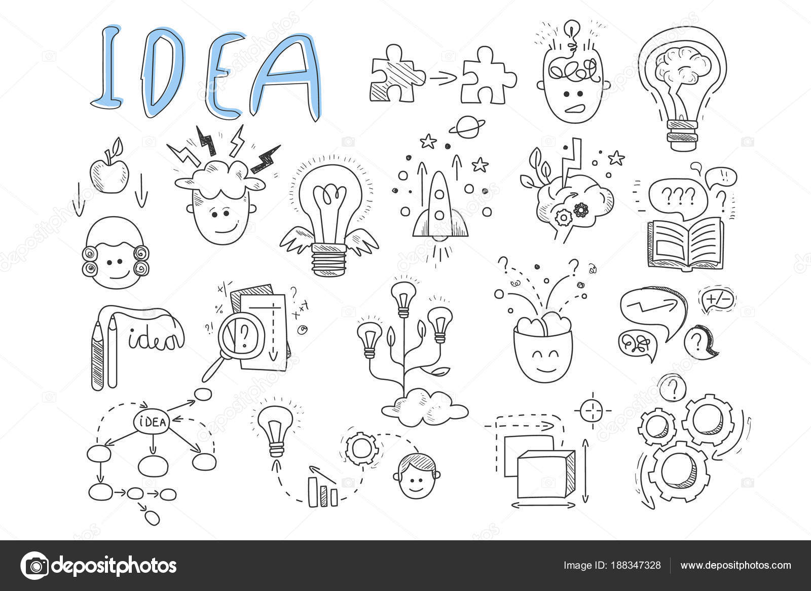 Idee Symbole Festgelegt Rakete Puzzles Drehende Zahnrader